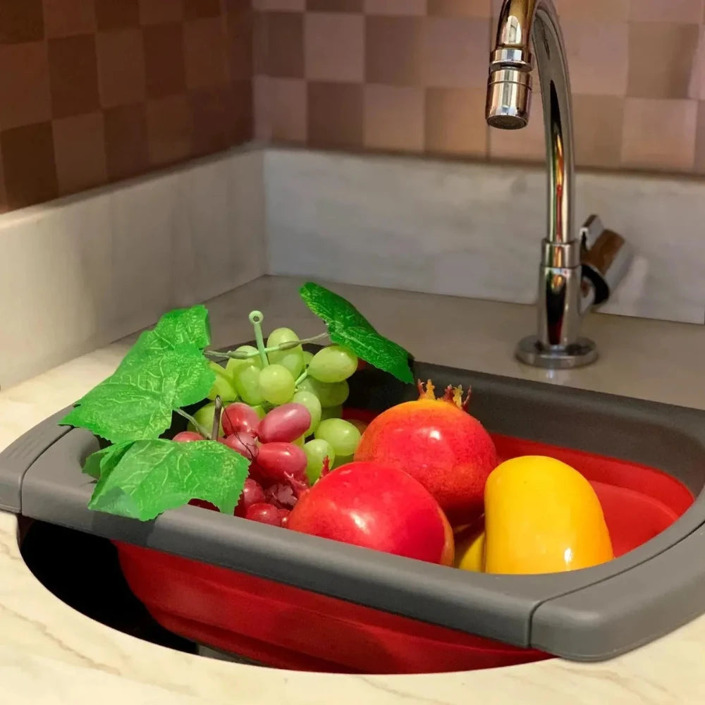 • Dobrável e compacto — economiza espaço nos armários e na pia