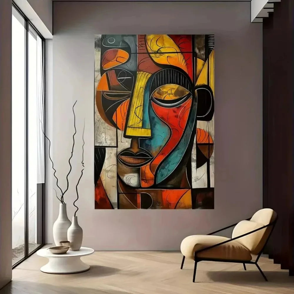 Quadro Abstrato Cubista Rosto Moderno